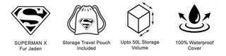 Tired of your backpack getting wrecked every time the skies decide to go full villain mode? Fear not, citizen! The Fur Jaden x Superman Rainproof Cape Cover has swooped in to save the day.