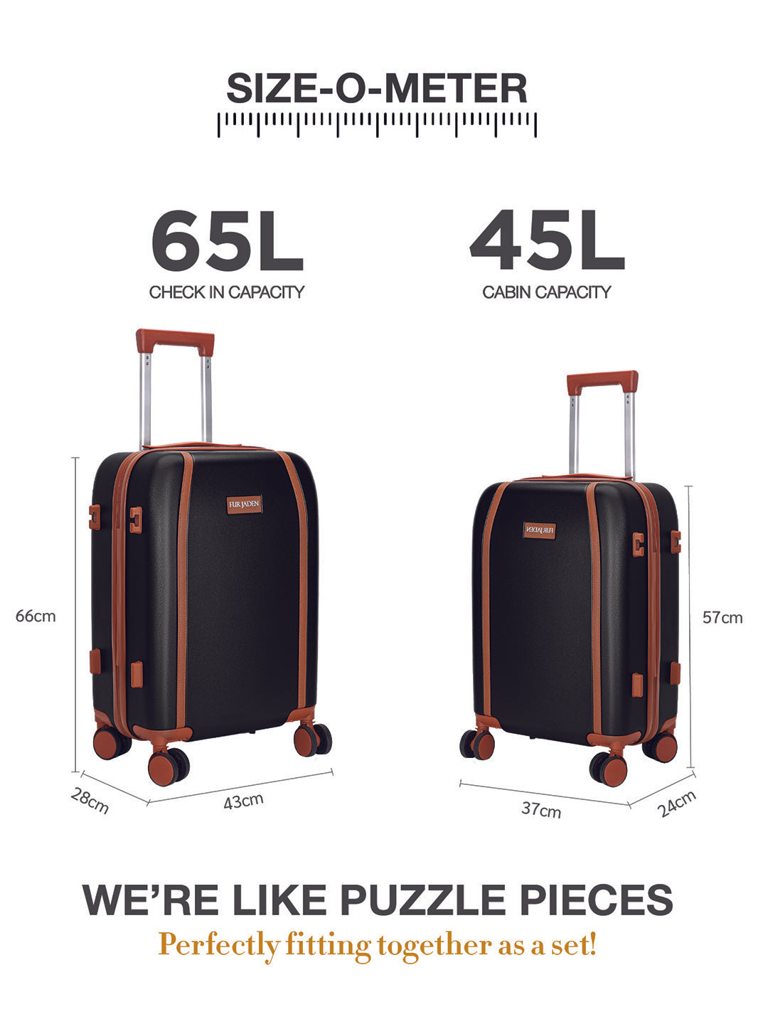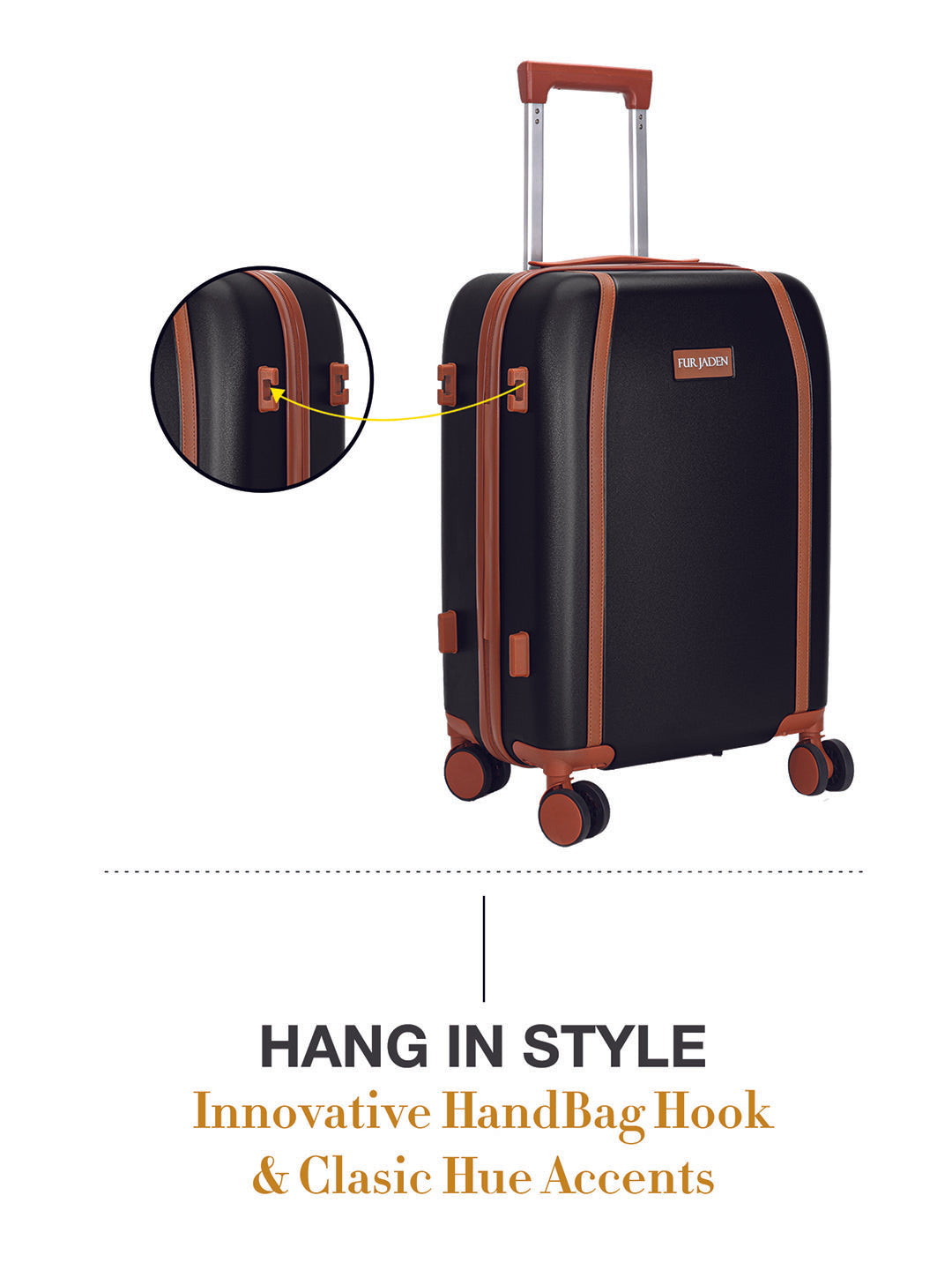 Elevate your travel experience with The Wayfarer, our classic polycarbonate suitcase, a fusion of timeless style and modern performance. Featuring a retro-inspired design with a luxurious metallic sheen embedded into the unbreakable polycarbonate shell, this suitcase is as durable as it is elegant. Ideal for all ages, it boasts a secure TSA-approved lock, aerospace-grade trolley system, and silent StealthTech wheels for a butter-smooth glide. Enhanced with premium vegan leather trims for an extra touch of sophistication, the suitcase is lightweight and easy to maneuver, while the built-in internal organizer ensures your belongings stay perfectly arranged. The Fur Jaden Wayfarer – a modern classic that redefines travel.
