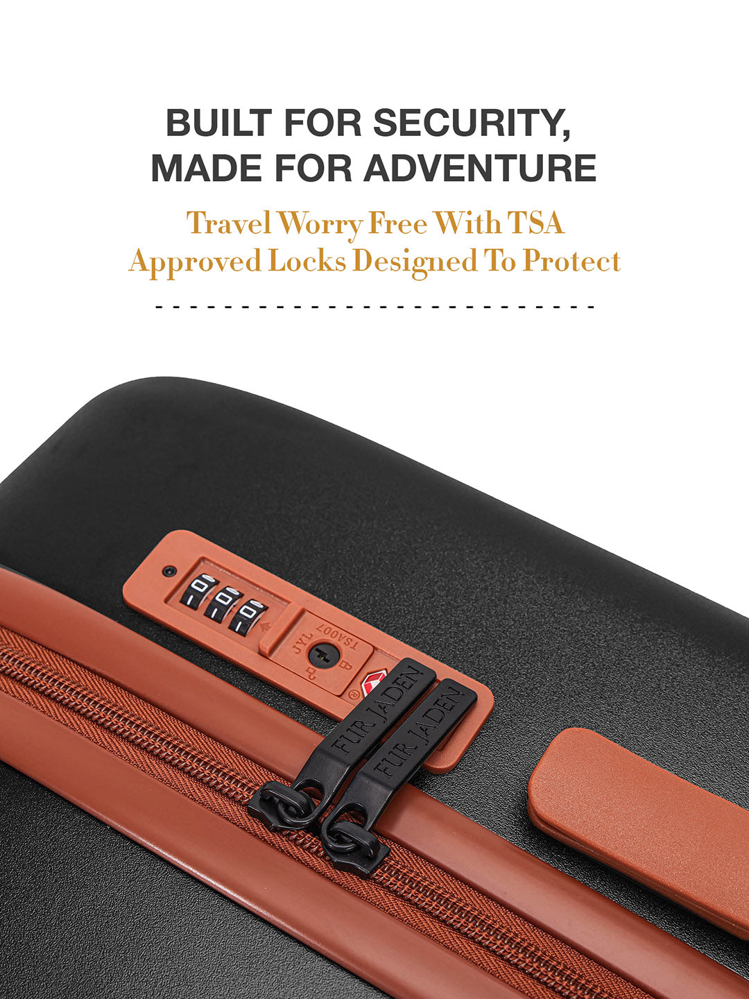 Elevate your travel experience with The Wayfarer, our classic polycarbonate suitcase, a fusion of timeless style and modern performance. Featuring a retro-inspired design with a luxurious metallic sheen embedded into the unbreakable polycarbonate shell, this suitcase is as durable as it is elegant. Ideal for all ages, it boasts a secure TSA-approved lock, aerospace-grade trolley system, and silent StealthTech wheels for a butter-smooth glide. Enhanced with premium vegan leather trims for an extra touch of sophistication, the suitcase is lightweight and easy to maneuver, while the built-in internal organizer ensures your belongings stay perfectly arranged. The Fur Jaden Wayfarer – a modern classic that redefines travel.