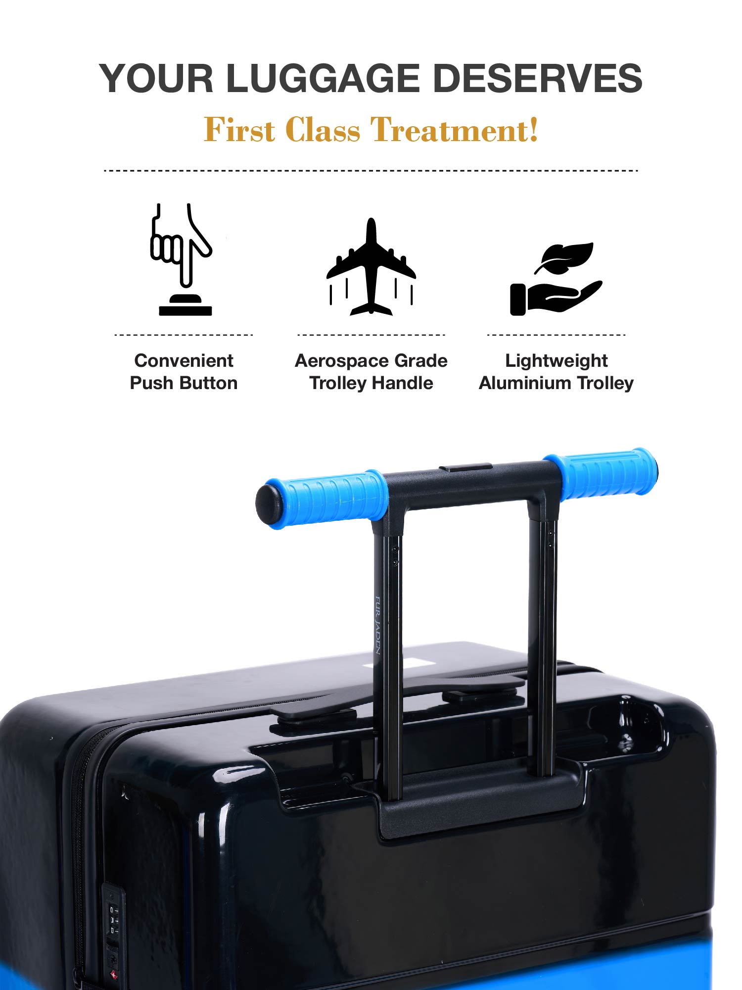 Turn heads at the airport with this dual-tone polycarbonate suitcase that screams style and strength. Crafted from premium German polycarbonate, it’s not just unbreakable but also ultra-light, making your travels smooth and carefree.