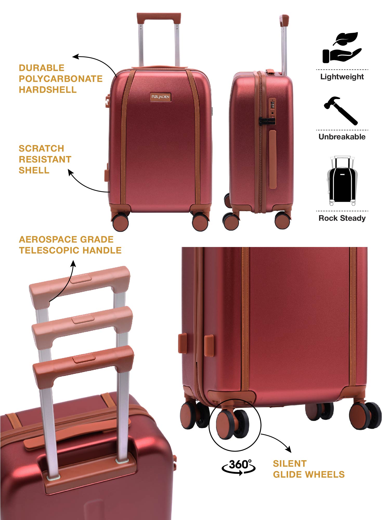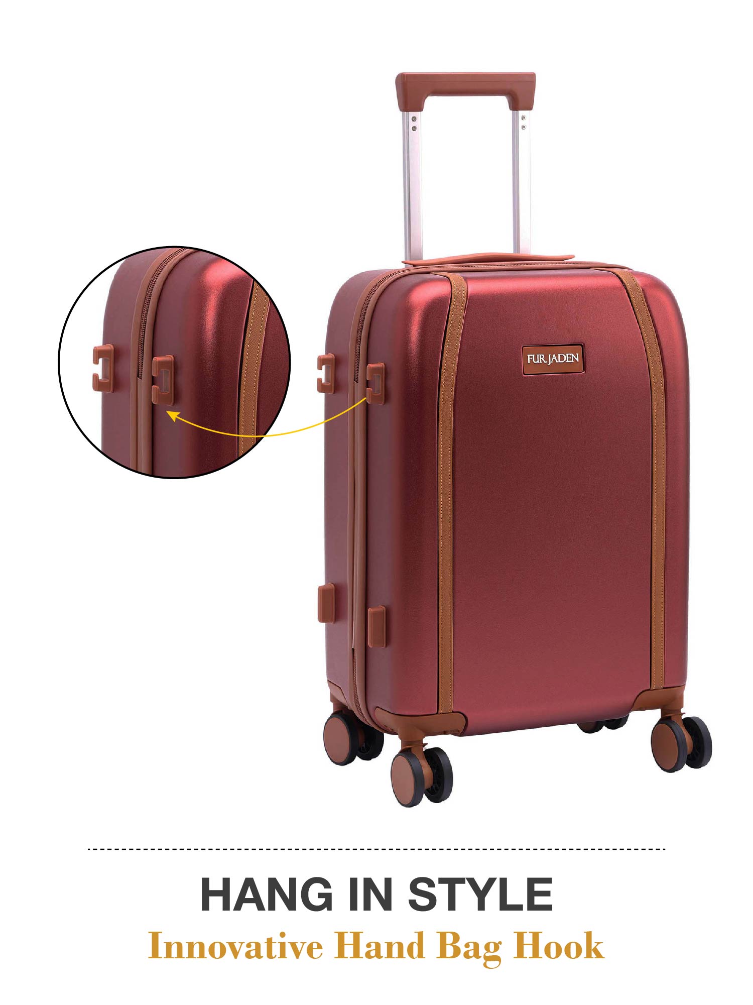 Elevate your travel experience with The Wayfarer, our classic polycarbonate suitcase, a fusion of timeless style and modern performance. Featuring a retro-inspired design with a luxurious metallic sheen embedded into the unbreakable polycarbonate shell, this suitcase is as durable as it is elegant. Ideal for all ages, it boasts a secure TSA-approved lock, aerospace-grade trolley system, and silent StealthTech wheels for a butter-smooth glide. Enhanced with premium vegan leather trims for an extra touch of sophistication, the suitcase is lightweight and easy to maneuver, while the built-in internal organizer ensures your belongings stay perfectly arranged. The Fur Jaden Wayfarer – a modern classic that redefines travel.