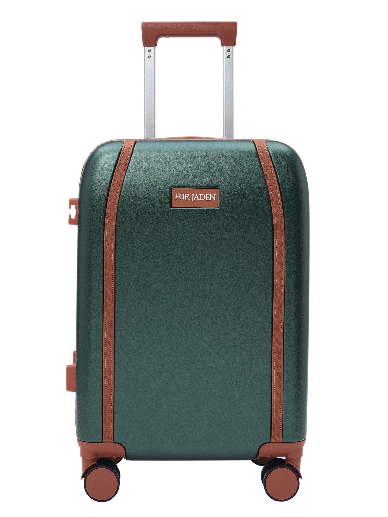 Elevate your travel experience with The Wayfarer, our classic polycarbonate suitcase, a fusion of timeless style and modern performance. Featuring a retro-inspired design with a luxurious metallic sheen embedded into the unbreakable polycarbonate shell, this suitcase is as durable as it is elegant. Ideal for all ages, it boasts a secure TSA-approved lock, aerospace-grade trolley system, and silent StealthTech wheels for a butter-smooth glide. Enhanced with premium vegan leather trims for an extra touch of sophistication, the suitcase is lightweight and easy to maneuver, while the built-in internal organizer ensures your belongings stay perfectly arranged. The Fur Jaden Wayfarer – a modern classic that redefines travel.