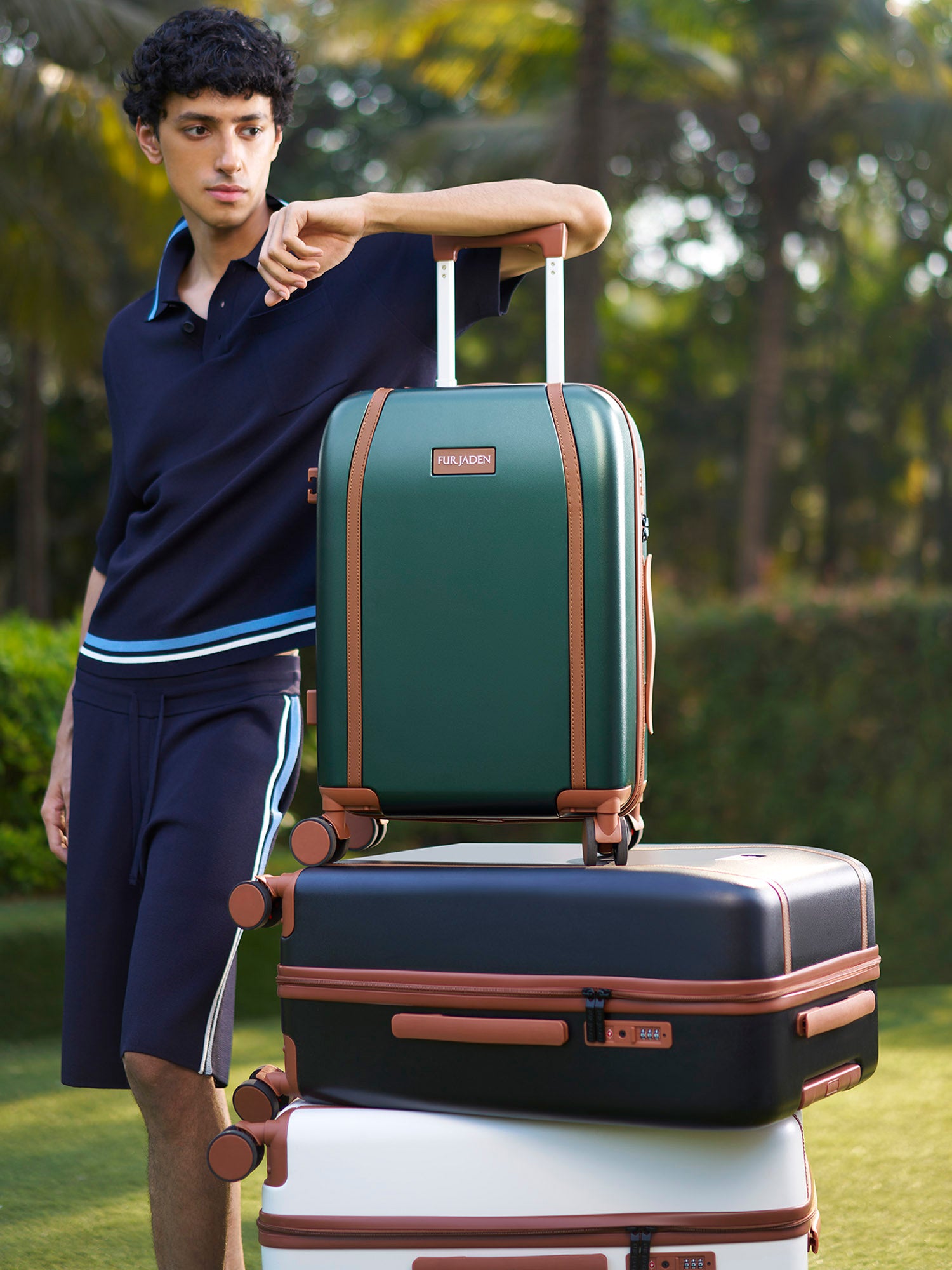 Elevate your travel experience with The Wayfarer, our classic polycarbonate suitcase, a fusion of timeless style and modern performance. Featuring a retro-inspired design with a luxurious metallic sheen embedded into the unbreakable polycarbonate shell, this suitcase is as durable as it is elegant. Ideal for all ages, it boasts a secure TSA-approved lock, aerospace-grade trolley system, and silent StealthTech wheels for a butter-smooth glide. Enhanced with premium vegan leather trims for an extra touch of sophistication, the suitcase is lightweight and easy to maneuver, while the built-in internal organizer ensures your belongings stay perfectly arranged. The Fur Jaden Wayfarer – a modern classic that redefines travel.