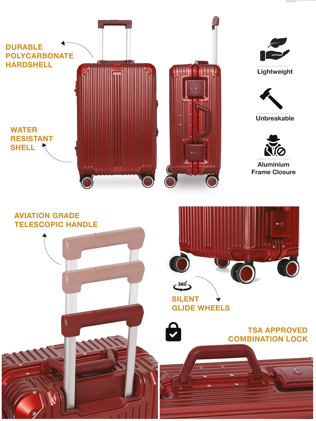 - Anti-Theft Aluminum Frame: Built with a robust, zipless aluminum frame for enhanced security and peace of mind while traveling.