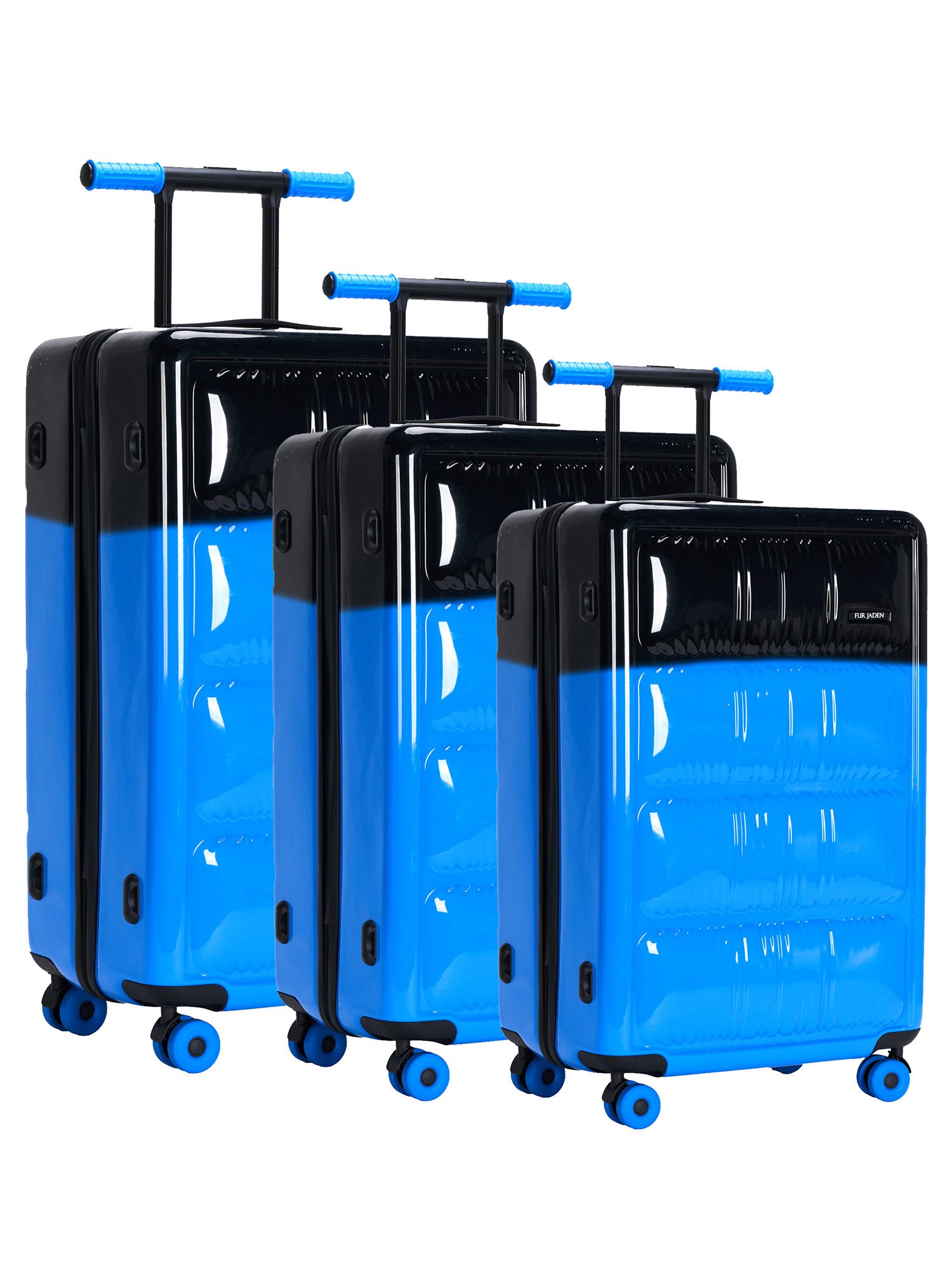 The glossy finish (with a peel-off protective sheet 👀) gives it a sleek vibe, while the dual-color design sets you apart with a bold Gen-Z aesthetic. Add in cartoon-inspired spinner wheels and playful bicycle-style handles, and you’ve got a travel buddy that’s as fun as it is functional.