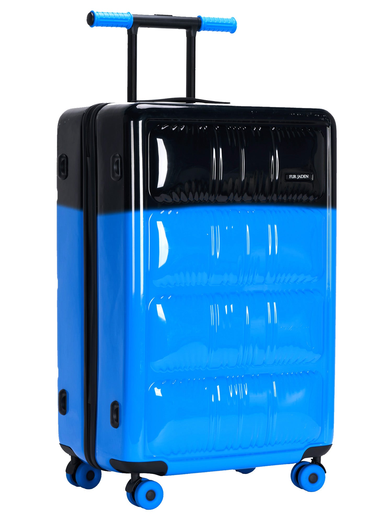 The glossy finish (with a peel-off protective sheet 👀) gives it a sleek vibe, while the dual-color design sets you apart with a bold Gen-Z aesthetic. Add in cartoon-inspired spinner wheels and playful bicycle-style handles, and you’ve got a travel buddy that’s as fun as it is functional.