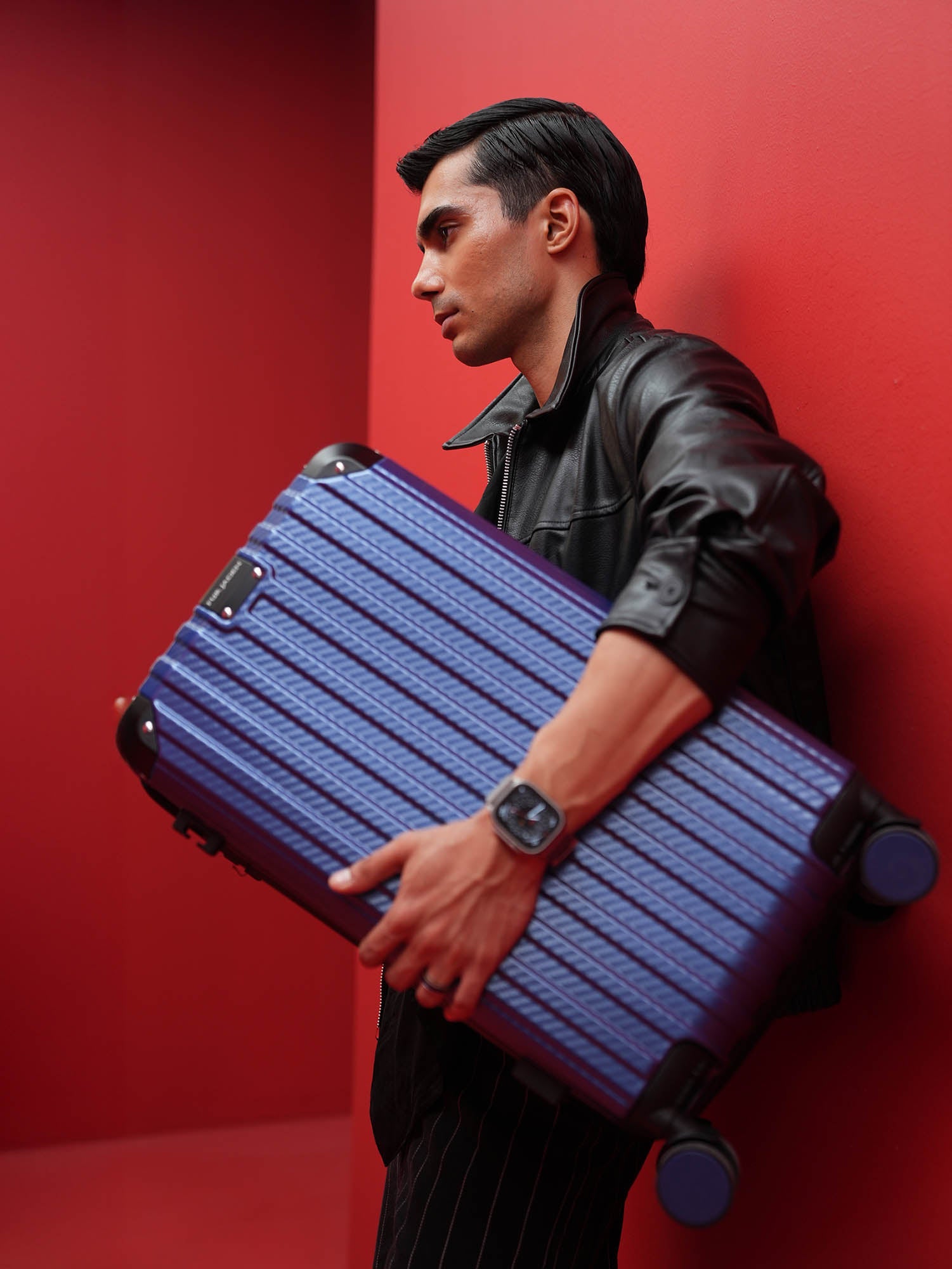 The exterior tells its own story — a striking carbon-finish surface with a subtle metallic sheen that catches the light with understated elegance. This premium texture isn’t just a design choice; it’s a statement. One that embodies Fur Jaden’s philosophy of self-expression and confidence — encouraging travelers to move boldly, authentically, and unapologetically.