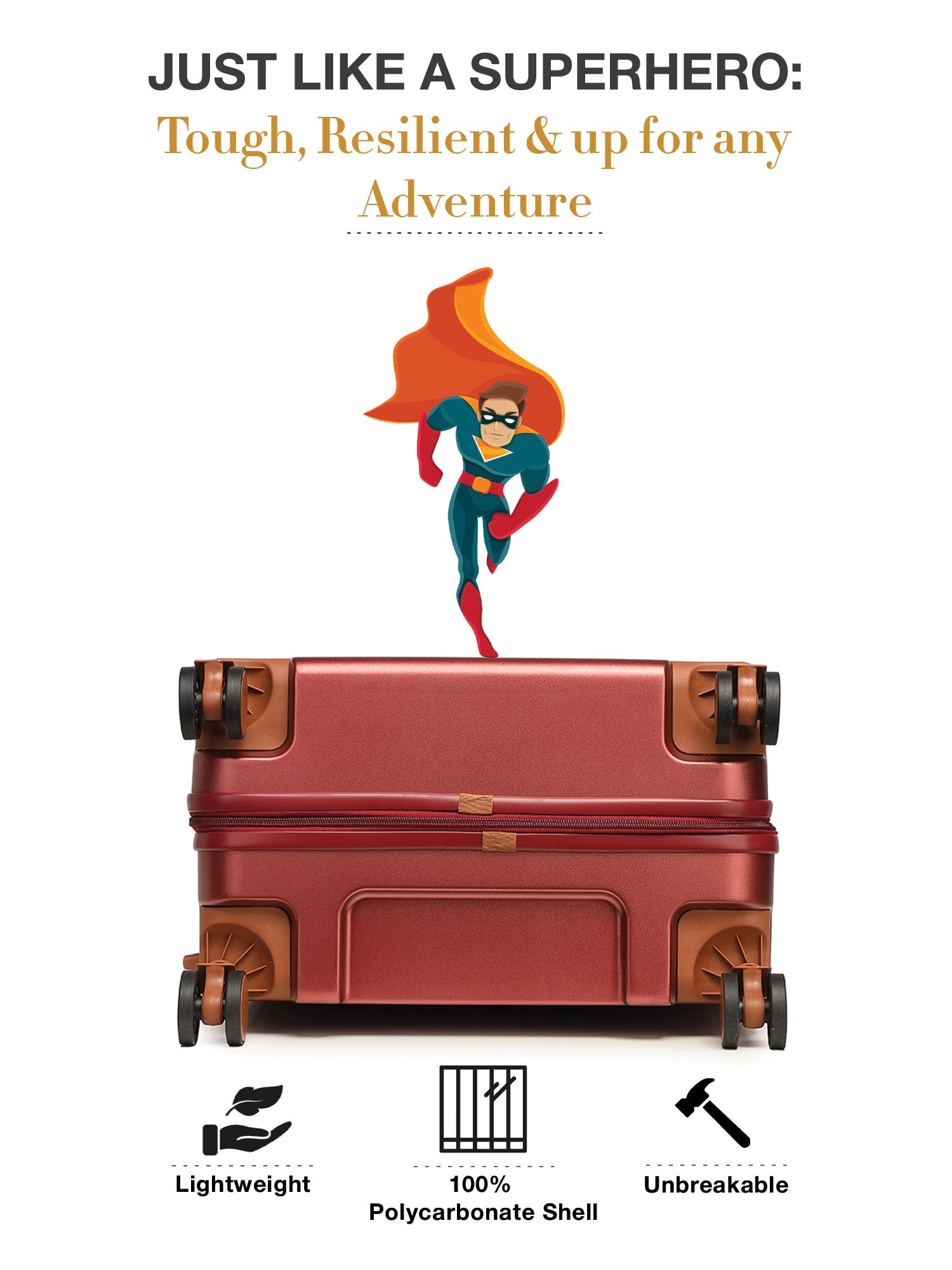 हमारी वारंटी महाकाव्य रोमांच (जैसे कि जब आप रेगिस्तान में अपने सूटकेस को घसीटते हुए गए थे!) या बाहरी दुर्घटनाओं (जैसे पेड़ की टहनी से टकराने के दौरान हैंडल टूटने की दुर्भाग्यपूर्ण घटना) से होने वाले नुकसान को कवर नहीं करती है। लेकिन चिंता न करें, हम अभी भी आपको अनुकूल लागत पर मरम्मत सेवाओं के साथ मदद कर सकते हैं।
