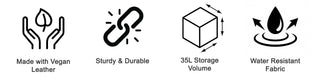 - MATERIAL - We use Highest Quality of Artificial Leather which is Durable, Long Lasting and tested to ensure they don't peel off in just few months. The leather is also water resistant. Inner fabric lining ensured to have a soft touch feel. We use quality zips and accessories that have a long life.