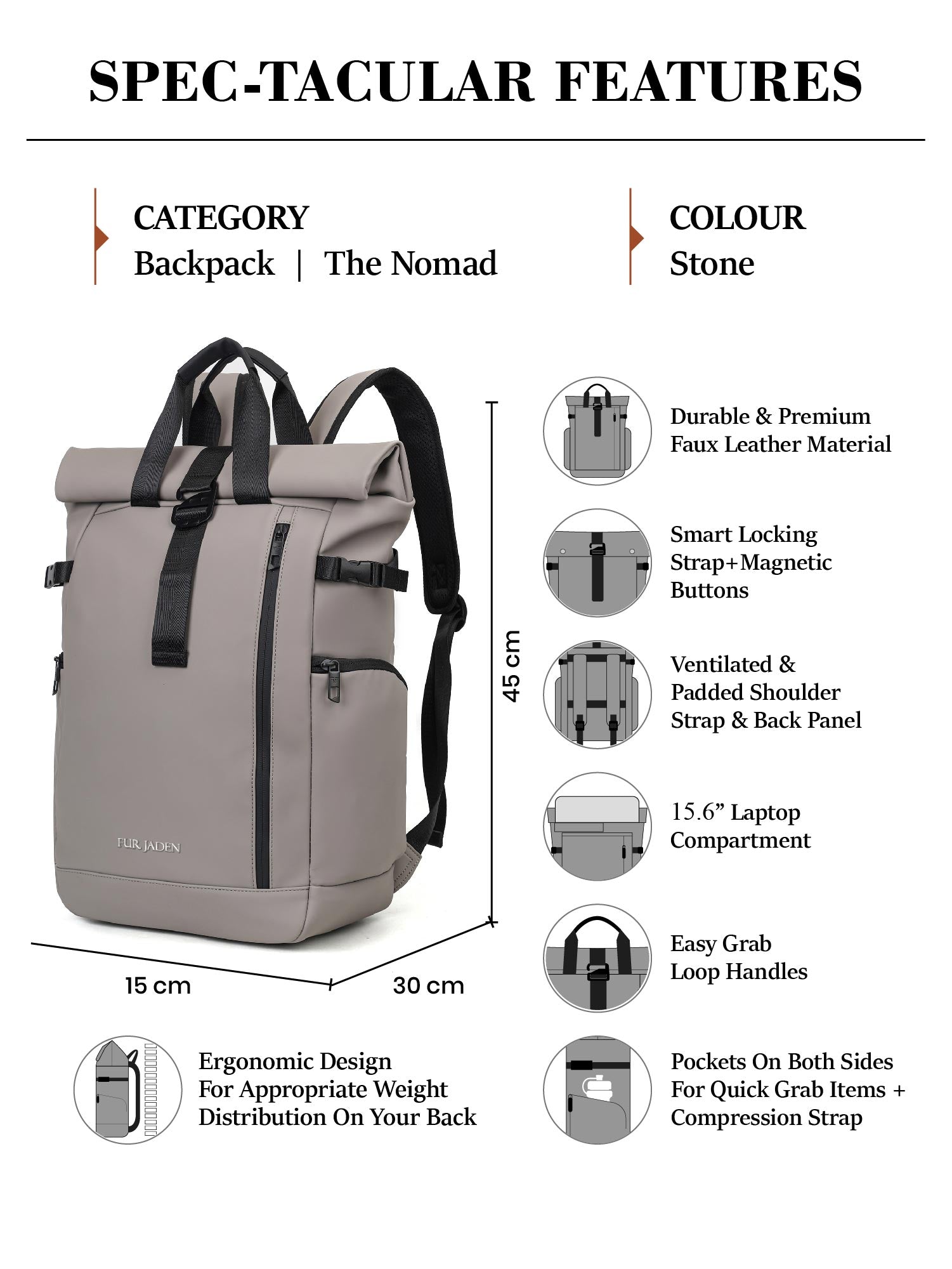 Fur Jaden Pro Series - The Nomad Laptop Backpack - Stone Grey