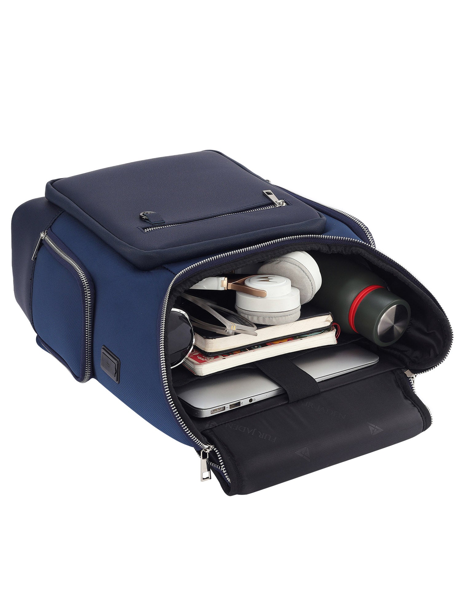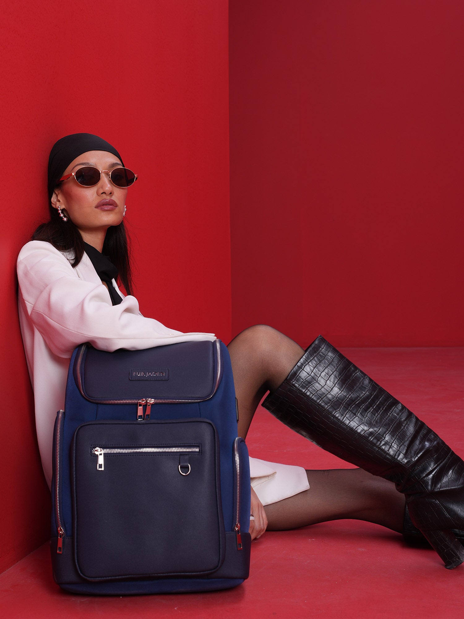 Style meets smart utility in this premium structured backpack—designed for the modern professional and tech-savvy traveler. Crafted with a fully self-standing frame, it exudes sophistication while offering unmatched functionality. The dedicated padded laptop compartment fits up to 14” laptops.