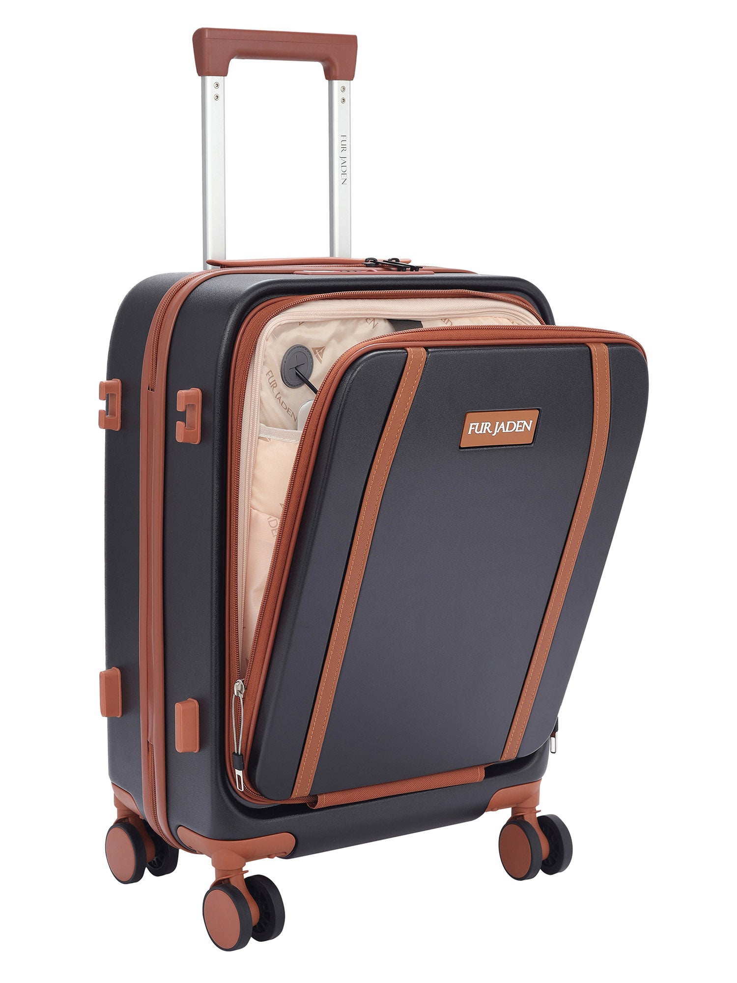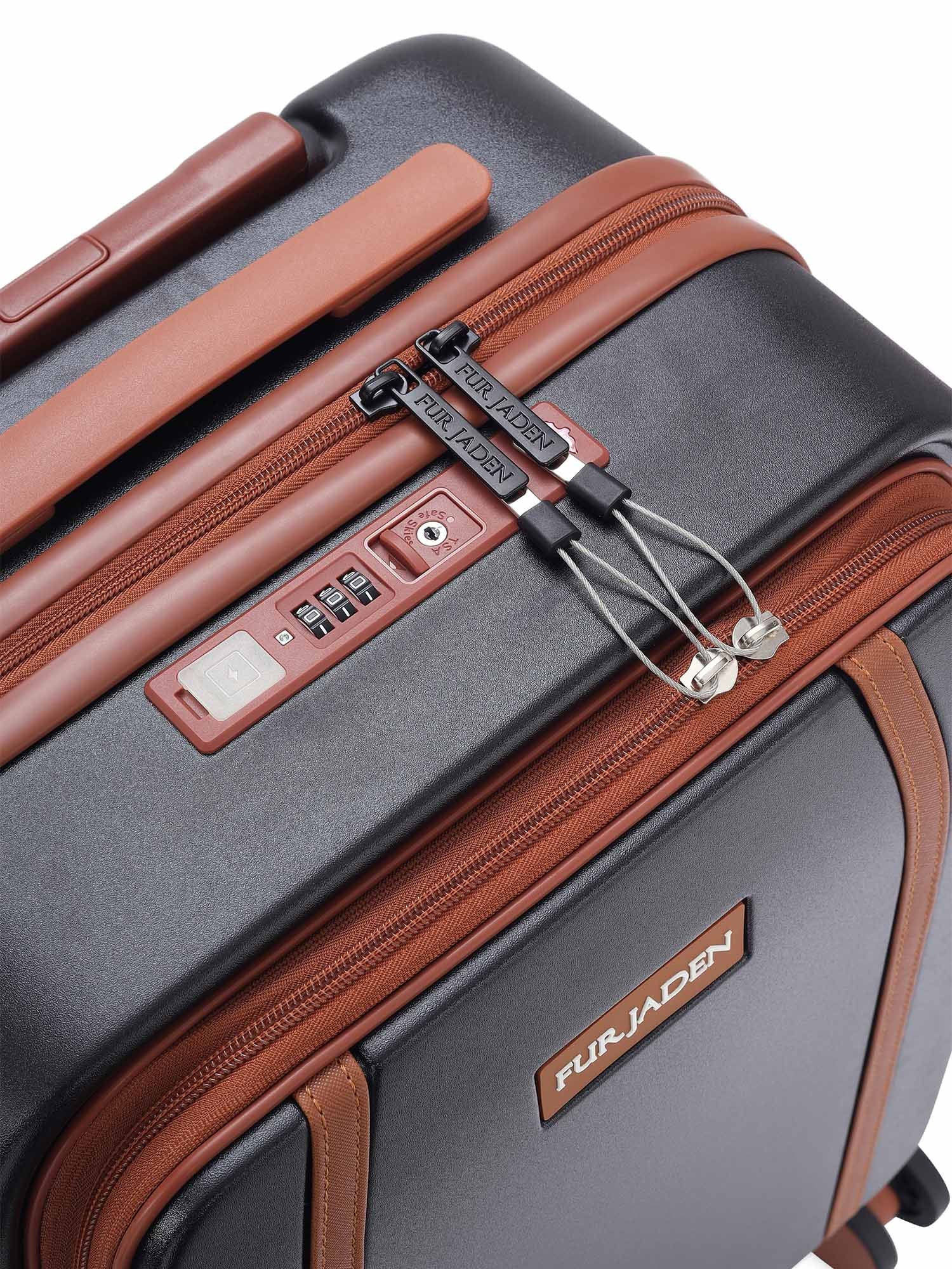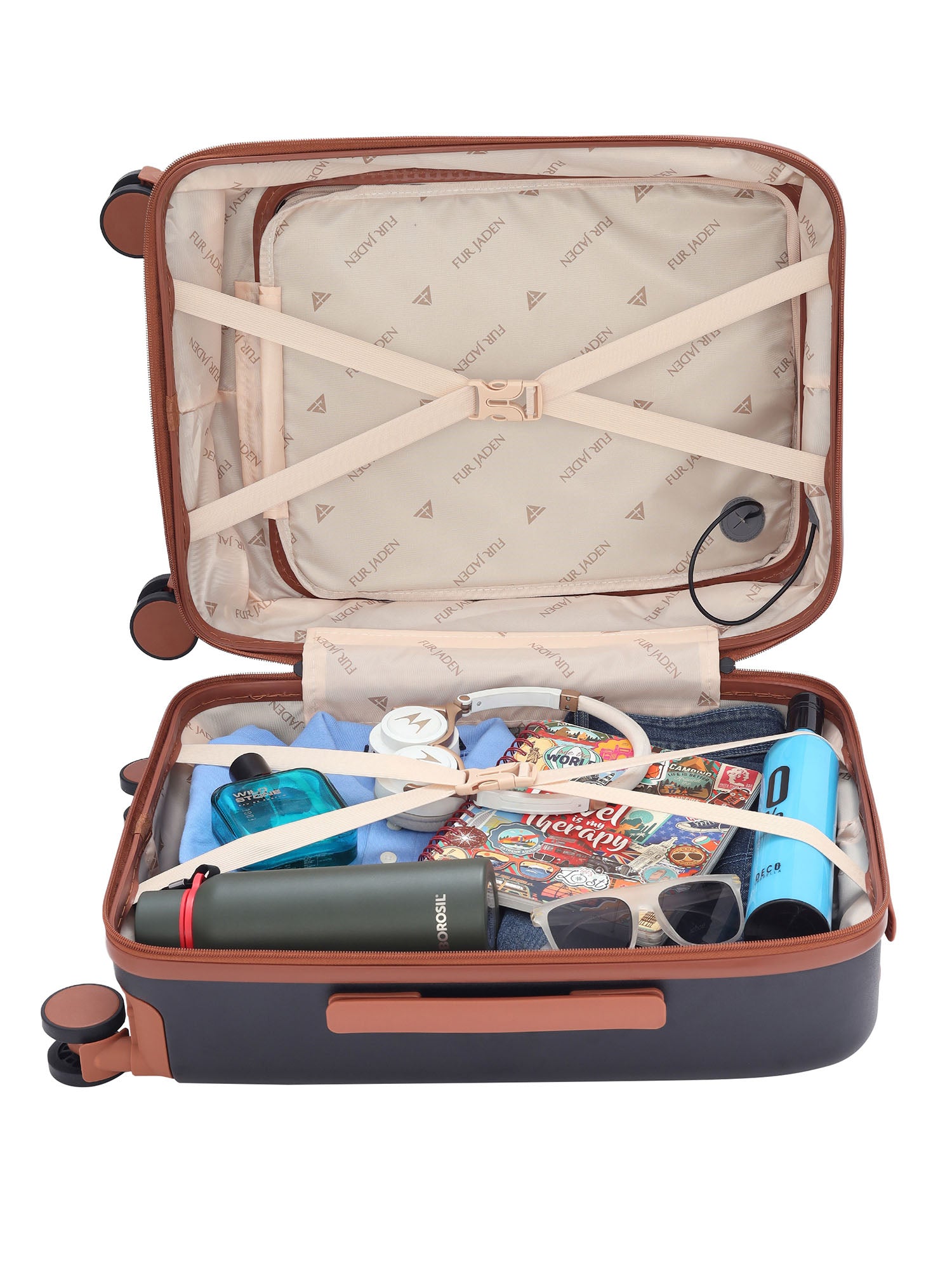 Elevate your travel experience with The Wayfarer, our classic polycarbonate suitcase, a fusion of timeless style and modern performance. Featuring a retro-inspired design with a luxurious metallic sheen embedded into the unbreakable polycarbonate shell, this suitcase is as durable as it is elegant. Ideal for all ages, it boasts a secure TSA-approved lock, aerospace-grade trolley system, and silent StealthTech wheels for a butter-smooth glide. Enhanced with premium vegan leather trims for an extra touch of sophistication, the suitcase is lightweight and easy to maneuver, while the built-in internal organizer ensures your belongings stay perfectly arranged. The Fur Jaden Wayfarer – a modern classic that redefines travel.
