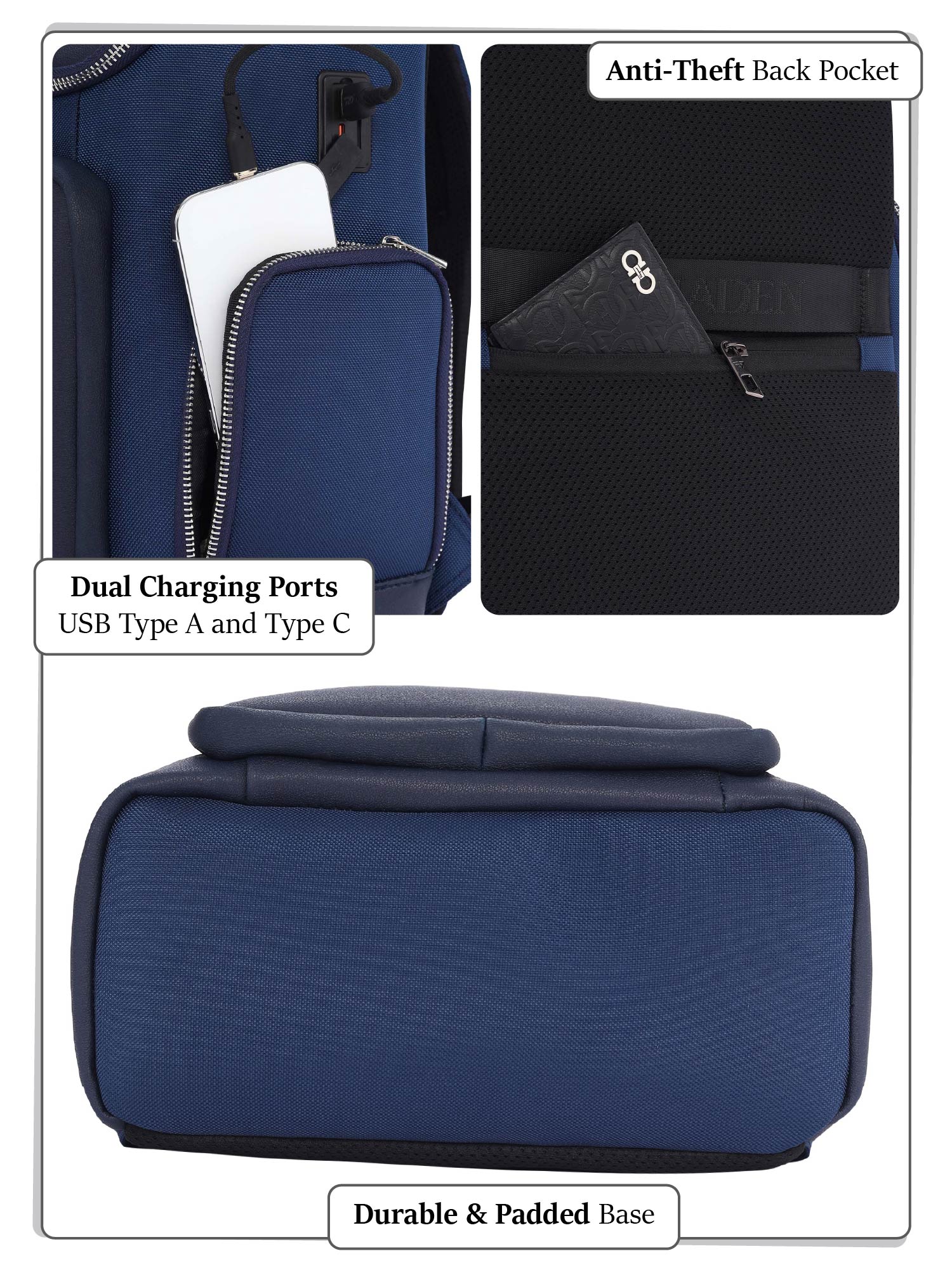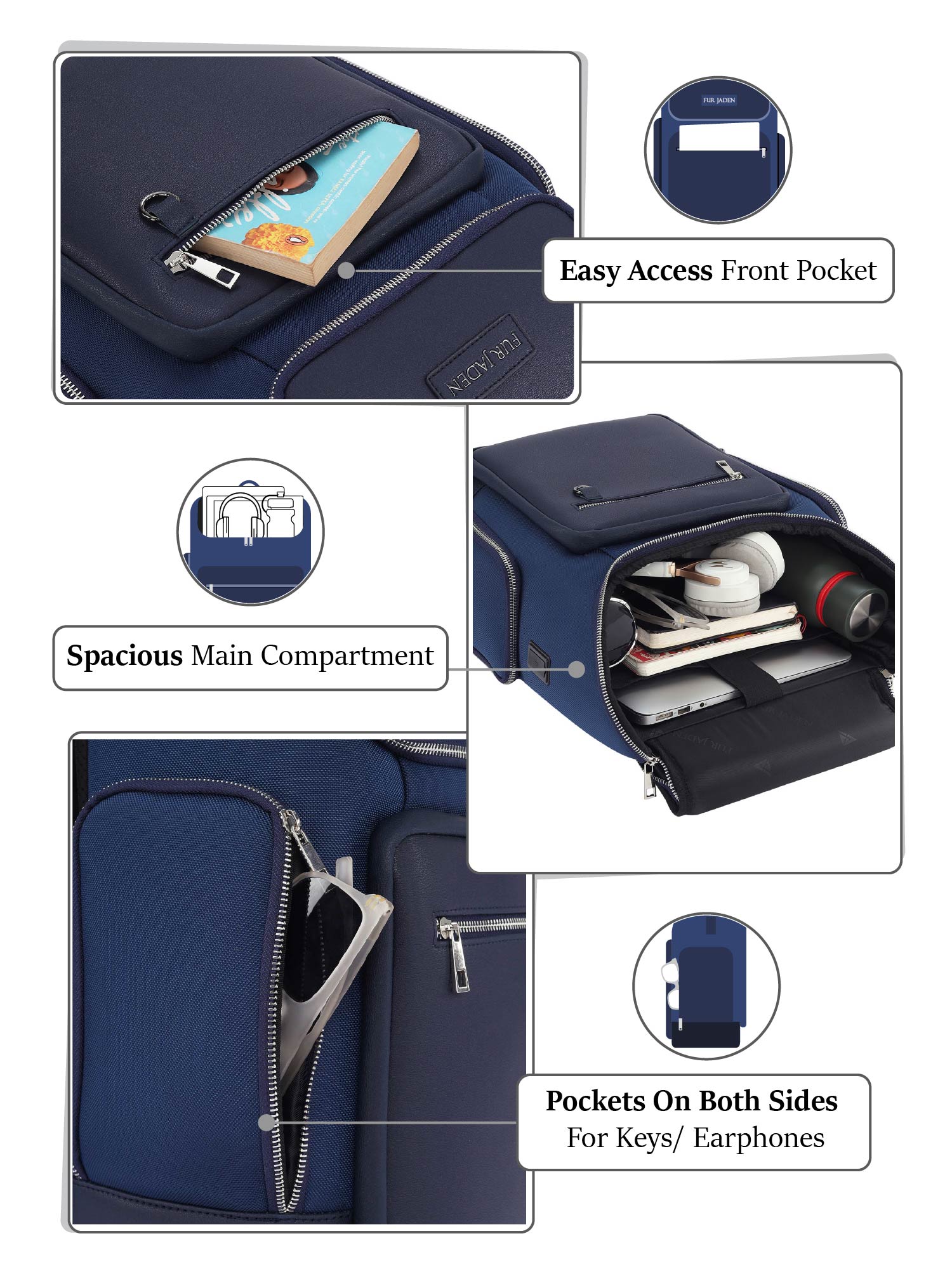 Whether you're commuting or traveling, stay connected with the USB charging port featuring USB-C output for phone charging and USB-A input for reverse charging your power bank inside the bag. Organize your day effortlessly with a front compartment for documents, dual side pockets for accessories, and a hidden anti-theft pocket for peace of mind.