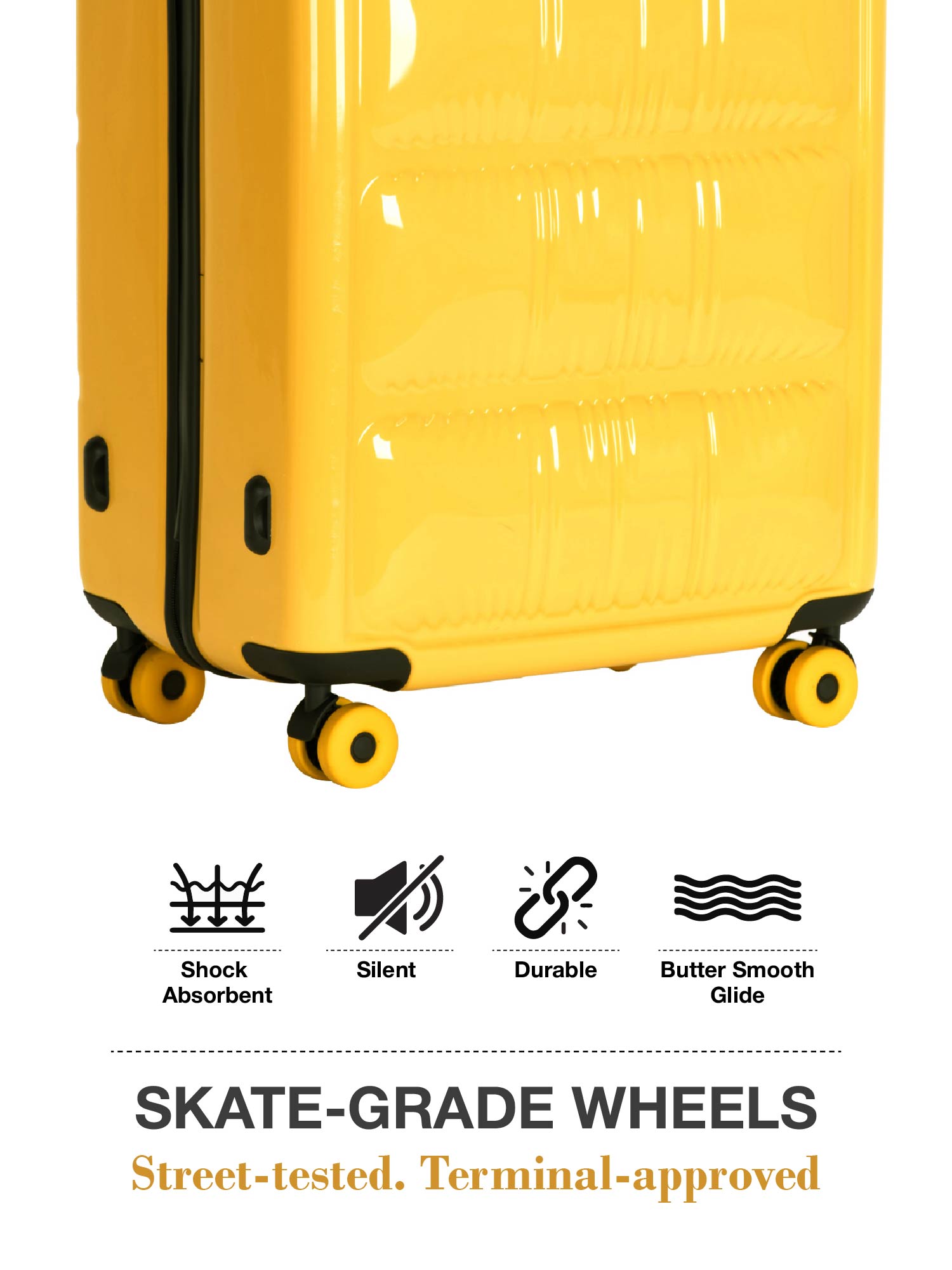 Turn heads at the airport with this dual-tone polycarbonate suitcase that screams style and strength. Crafted from premium German polycarbonate, it’s not just unbreakable but also ultra-light, making your travels smooth and carefree.